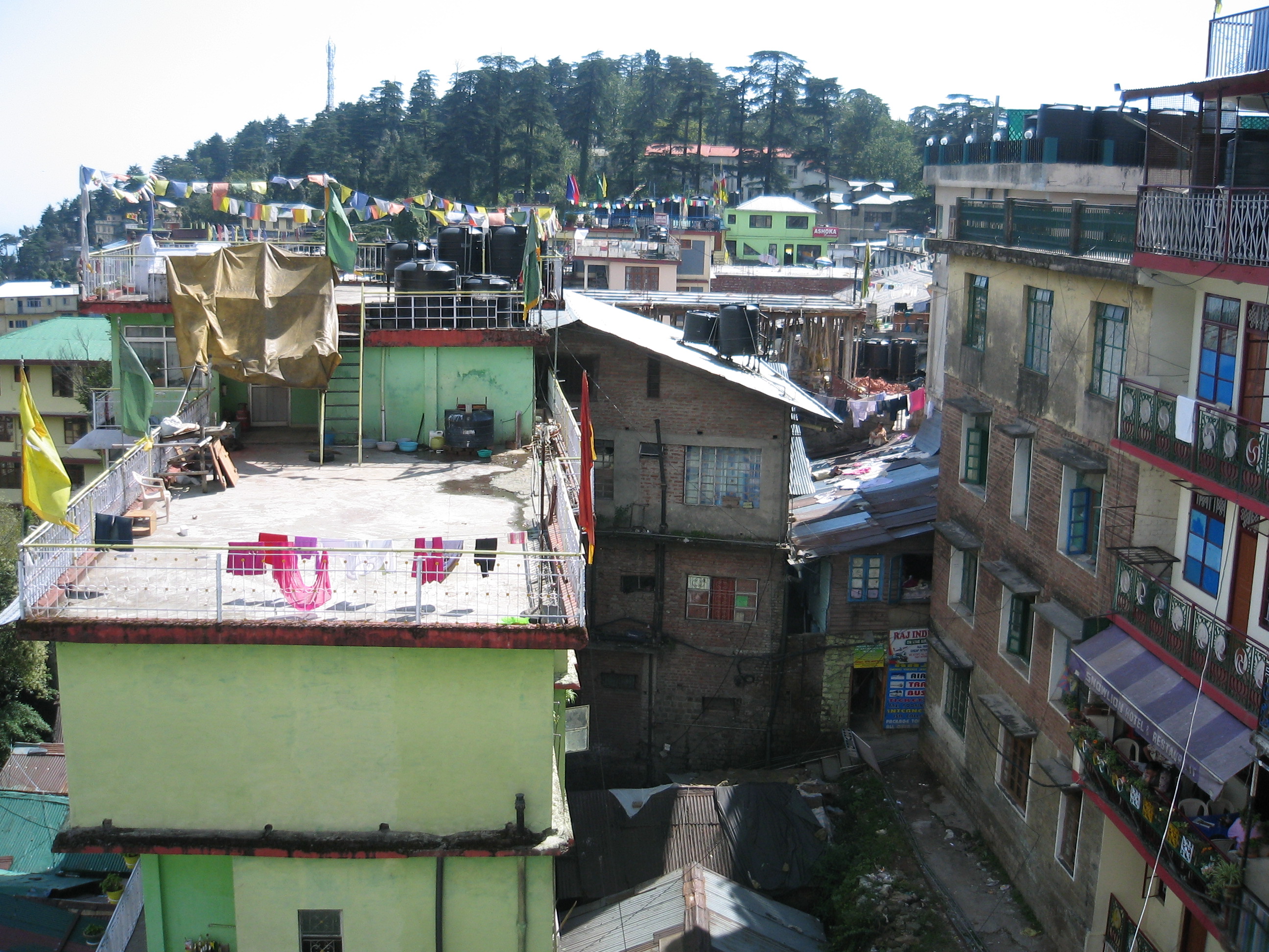 Vi er nu taget en tur til Indien og Nepal med Tibet Charity under ledelse af Lakha Lama og Pia Lakha. Vi er i alt 24 personer og første rejsemål er Dharamsala som nås via Wien og Delhi. I alt 3 flyveture med udfyldelse af indrejseansøgninger og H1N1 influenzahelbredsattester. Vi bliver indlogeret 4 km uden for byen nær skolen for tibetanske flygtningebørn "Tibet Children Village" TCV. Det øverste billede viser 700 børn øve sig i at danne "CUT CO2 350 SAVE WORLD" til den store opvisning den 25 oktober, hvor Dalai Lama vil være til stede.